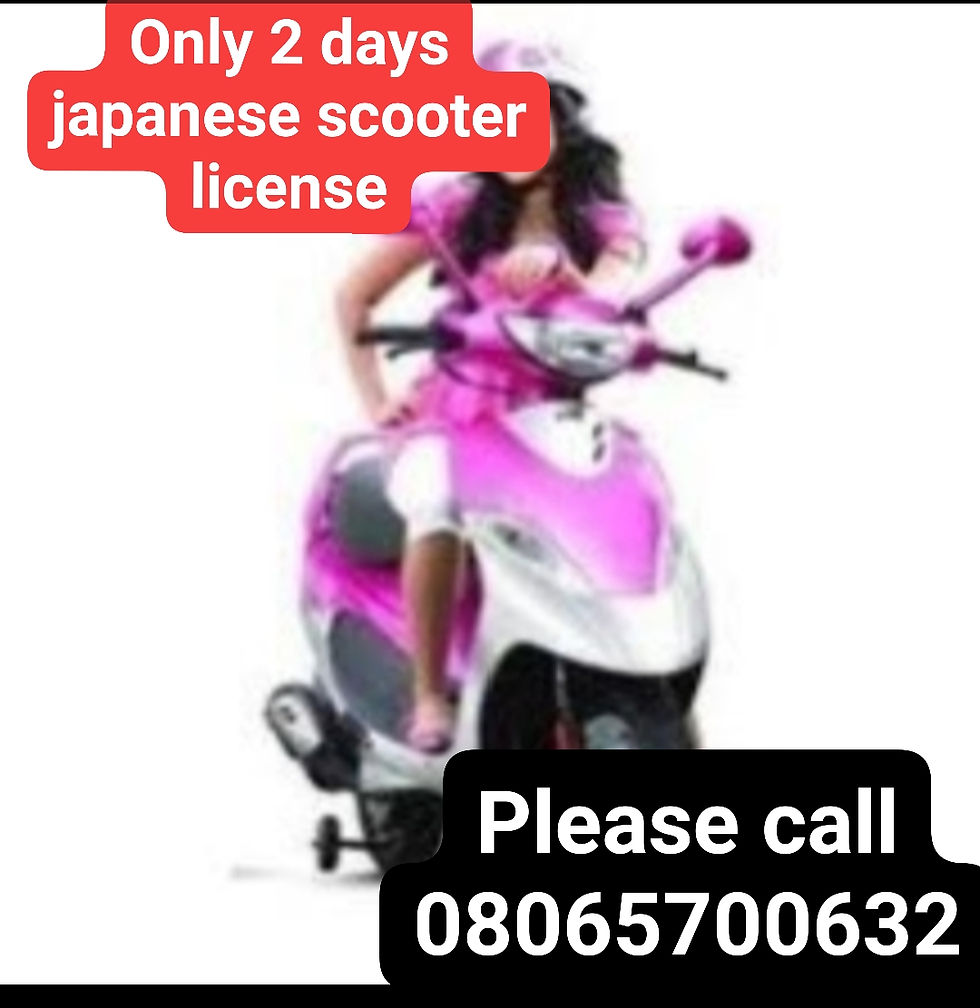 SCOOTER..... LICENSE***********************50CC SCOOTER LICENCE TIME ONLY 1 OR 2 DAY.COST: ONLY ¥50000.